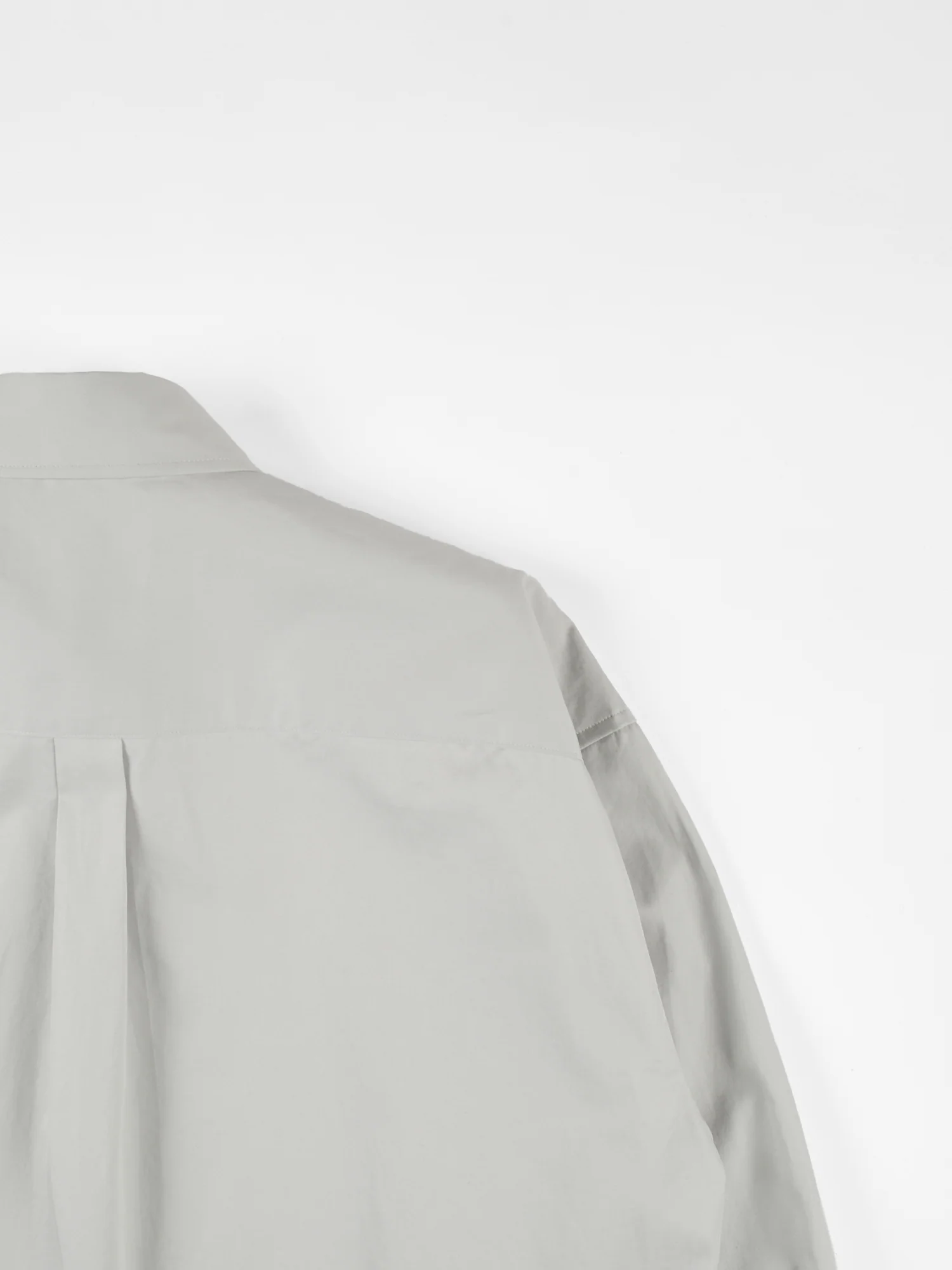 フィンクスコットン原料を使用した高密度ツイル素材のオーバーサイズ比翼シャツ。