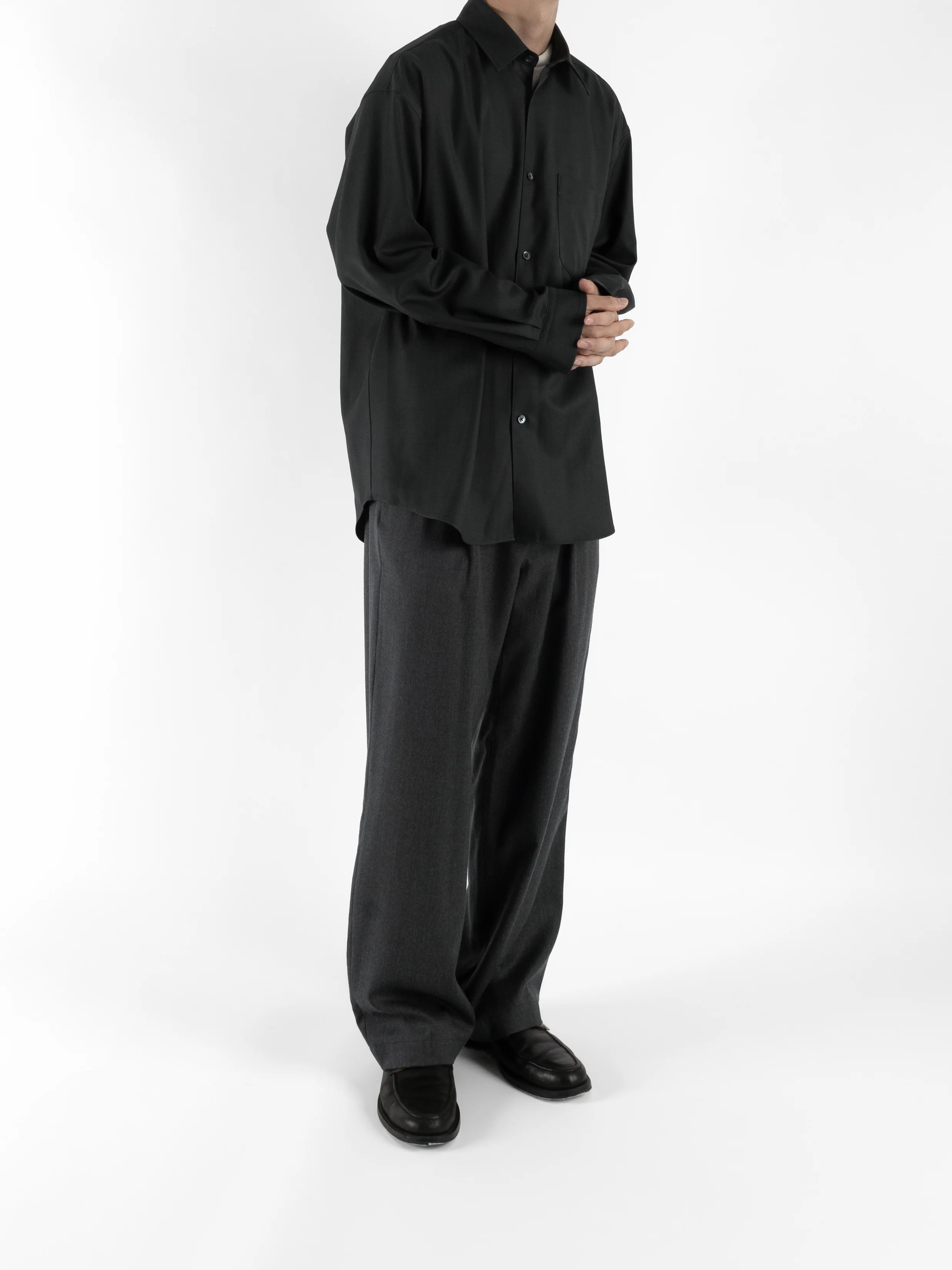 Super130's WOOL CHAMBRAY GABARDINE SHIRTS|BLUE CHARCOAL