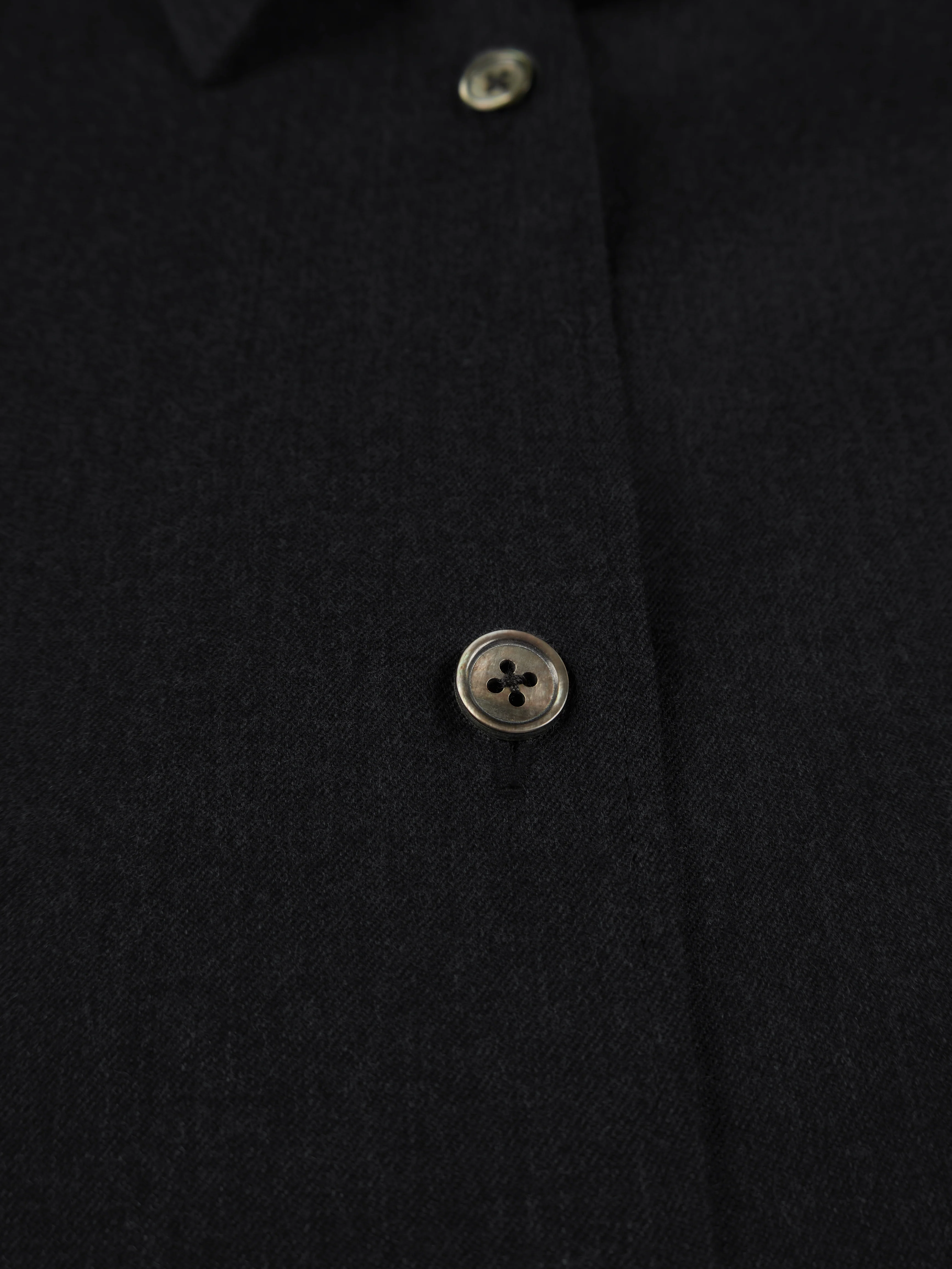 Super130's WORSTED WOOL LIGHT MILLED SHIRTS DRESS|TOP BLACK